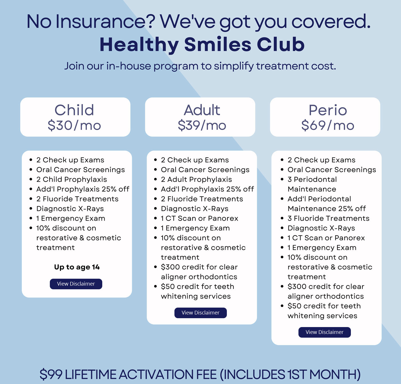 Regular dental visits improve overall health so we have designed a Membership Plan for our uninsured dental patients to simplify payment for preventative, cosmetic and restorative treatment.